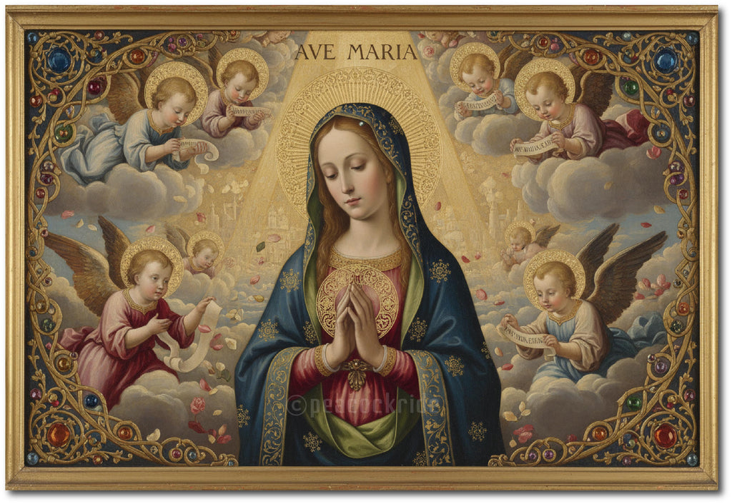 Ave Maria | Holy Mother | Jesus Christ | Catholic Prayer | Divine Christian Art Print I Wall Poster / Frames